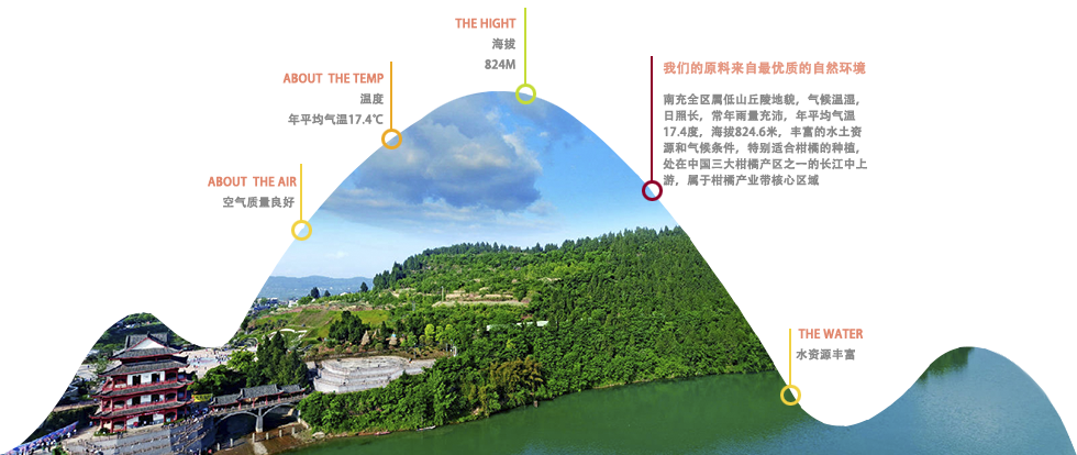 四川位于西南腹地,地處長江上游,東臨重慶,南接云貴,西銜西藏,北連陜甘,境內(nèi)秀麗,物產(chǎn)豐富,是全國的農(nóng)產(chǎn)品供應大省,自古被譽為天府之國,南充是川東北中心城市,位于嘉陵江中游,是古老嘉陵江畔的明珠,久負盛名的水果之洲,南充屬全區(qū)屬低山丘陵地貌,氣候溫濕,日照長,常年雨量充沛,年平均氣溫17.4度,海拔824.6米,豐富的水土資源和氣候條件,特別適合柑橘的種植,處在中國三大柑橘產(chǎn)區(qū)之一的長江中上游,屬于柑橘產(chǎn)業(yè)帶核心區(qū)域
